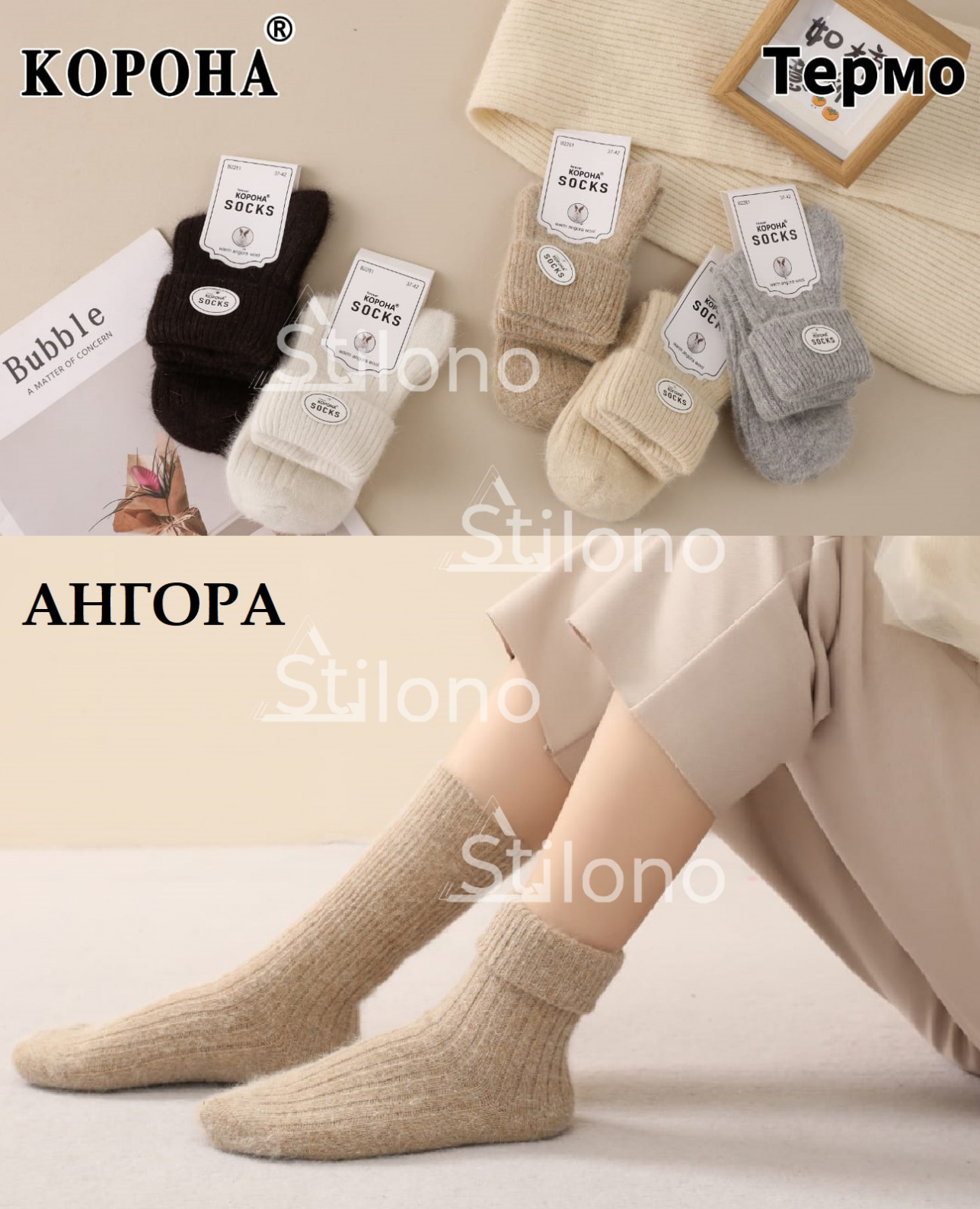 Женские махровые термоноски из ангоры